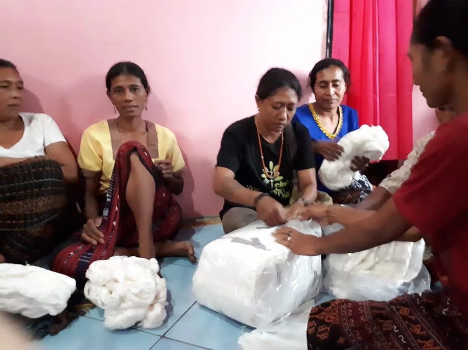 Bantuan Benang untuk penenun di Pulau PALU’E, bernama Nangahore dan Pendampingan WARLAMI mengembangkan tenun-tenun PALU’E